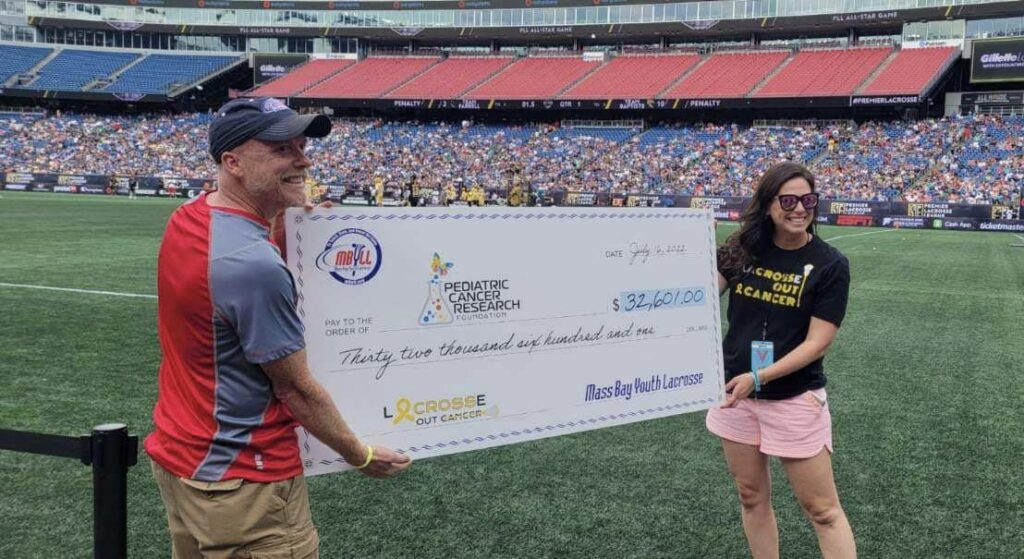 Scenes from last year’s LaCROSSe Out Cancer event, at Premier Lacrosse League All Star Game at Gillette Stadium— July, 2022.